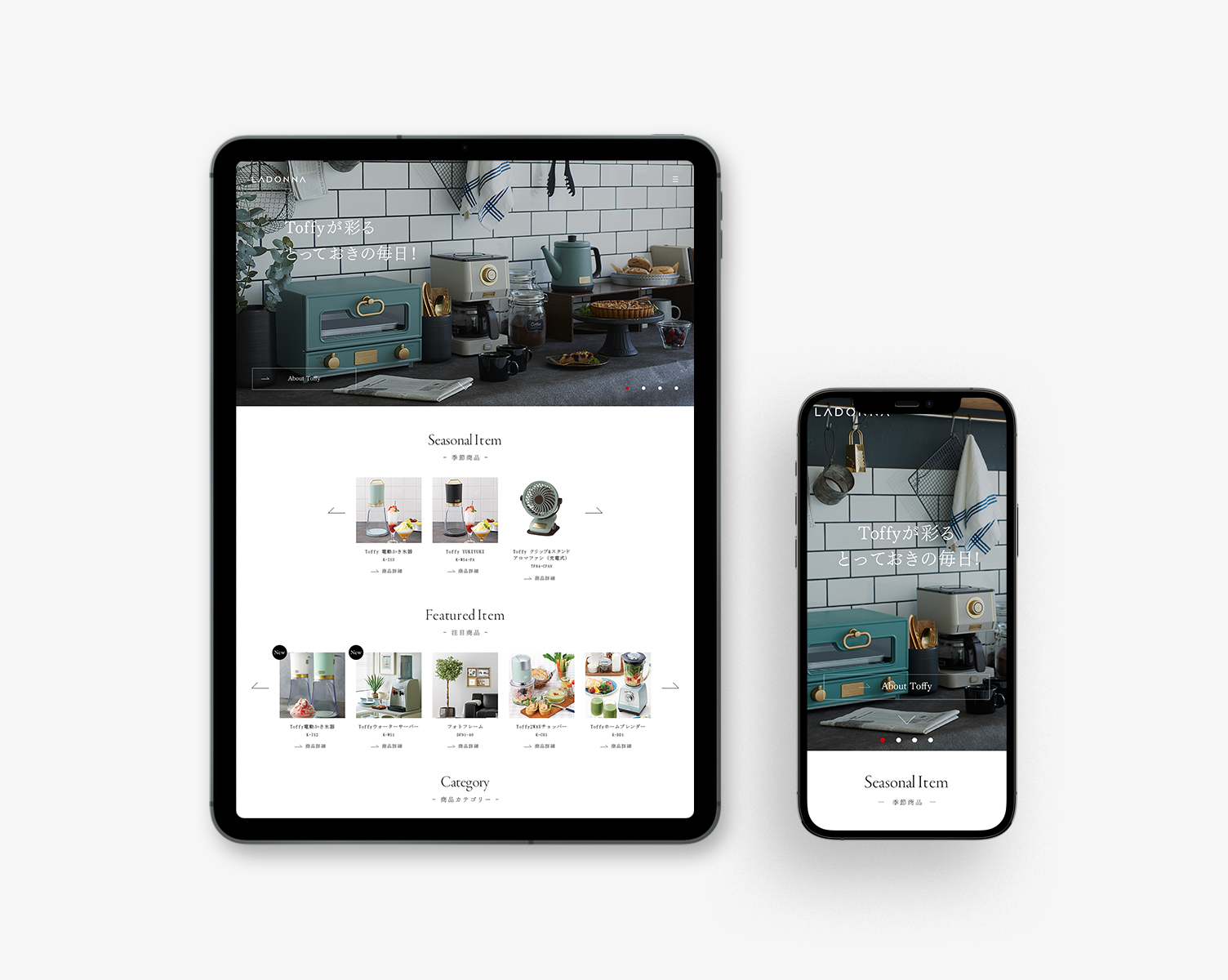 見た目の美しさは、単なる演出ではなくブランドの信頼感にもつながる要素です。ladonnaのサイトでは、暮らしを彩るプロダクトとしての魅力を、落ち着いたビジュアルの中で丁寧に表現しました。
