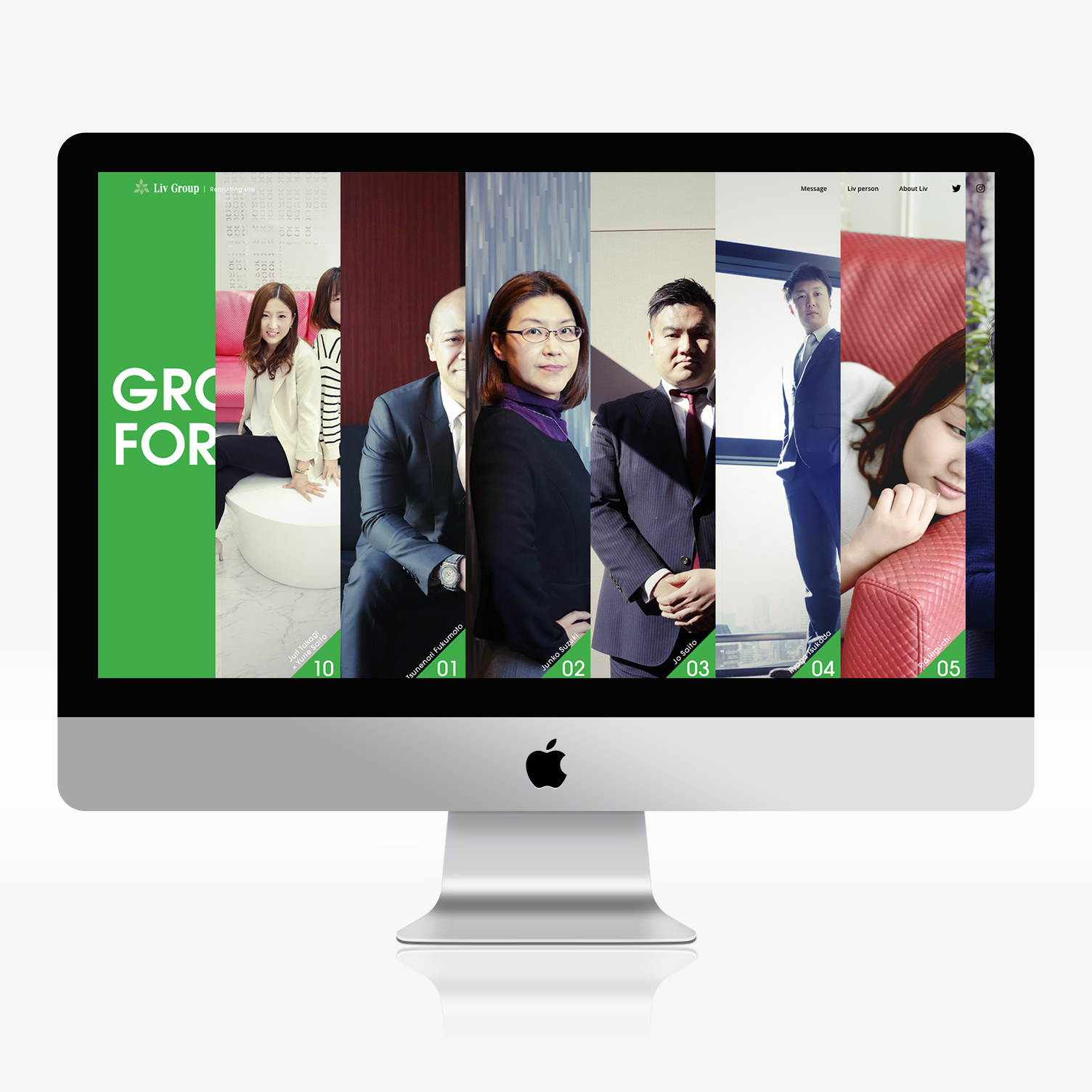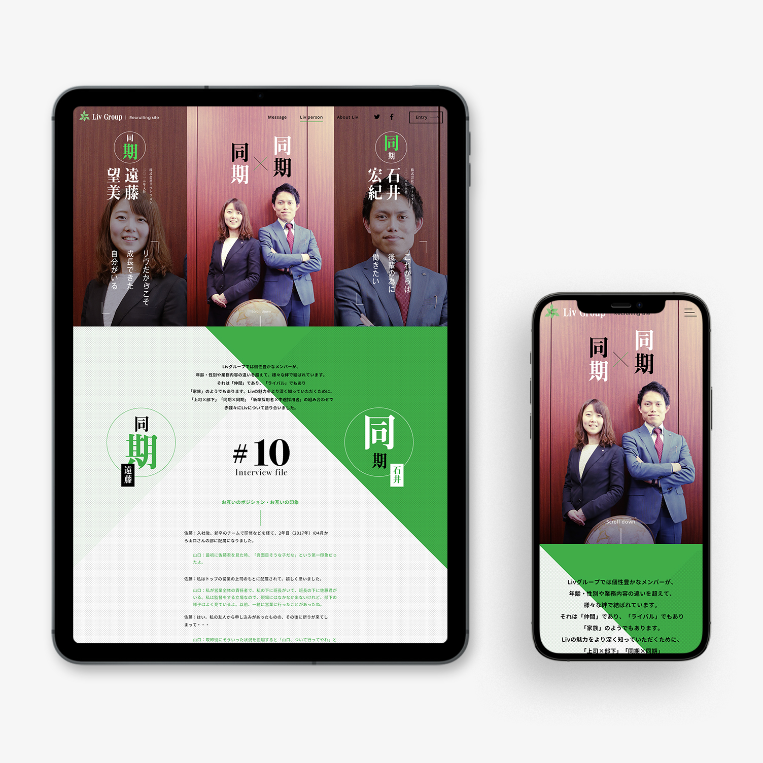 内部をきちんと見せることは、企業の魅力だけでなく誠実さを伝えることにもつながります。LIV Groupの採用サイトでは、デザインの強さだけで終わらせず、求職者が働く未来を具体的に思い描けるような情報設計まで含めて丁寧に組み立てました。