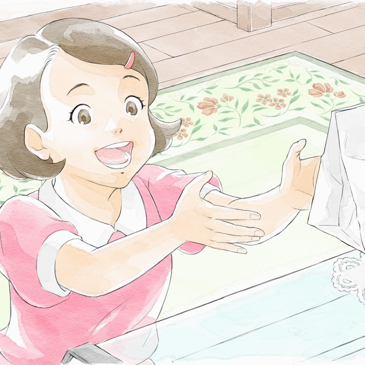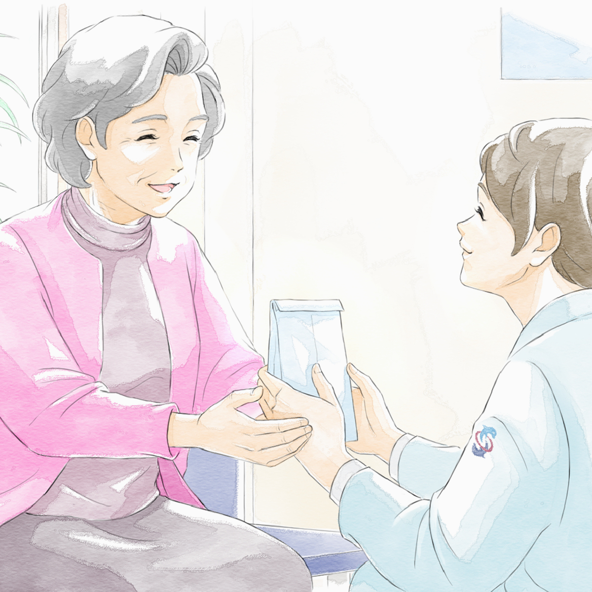 人物の表情やしぐさ、空気感のある色づかいを通して、見る人が感覚的に安心できるような世界観を整えました。 説明的に伝えるのではなく、絵そのもののやわらかさや距離感によって、ブランドの姿勢が自然に伝わることを目指しています。