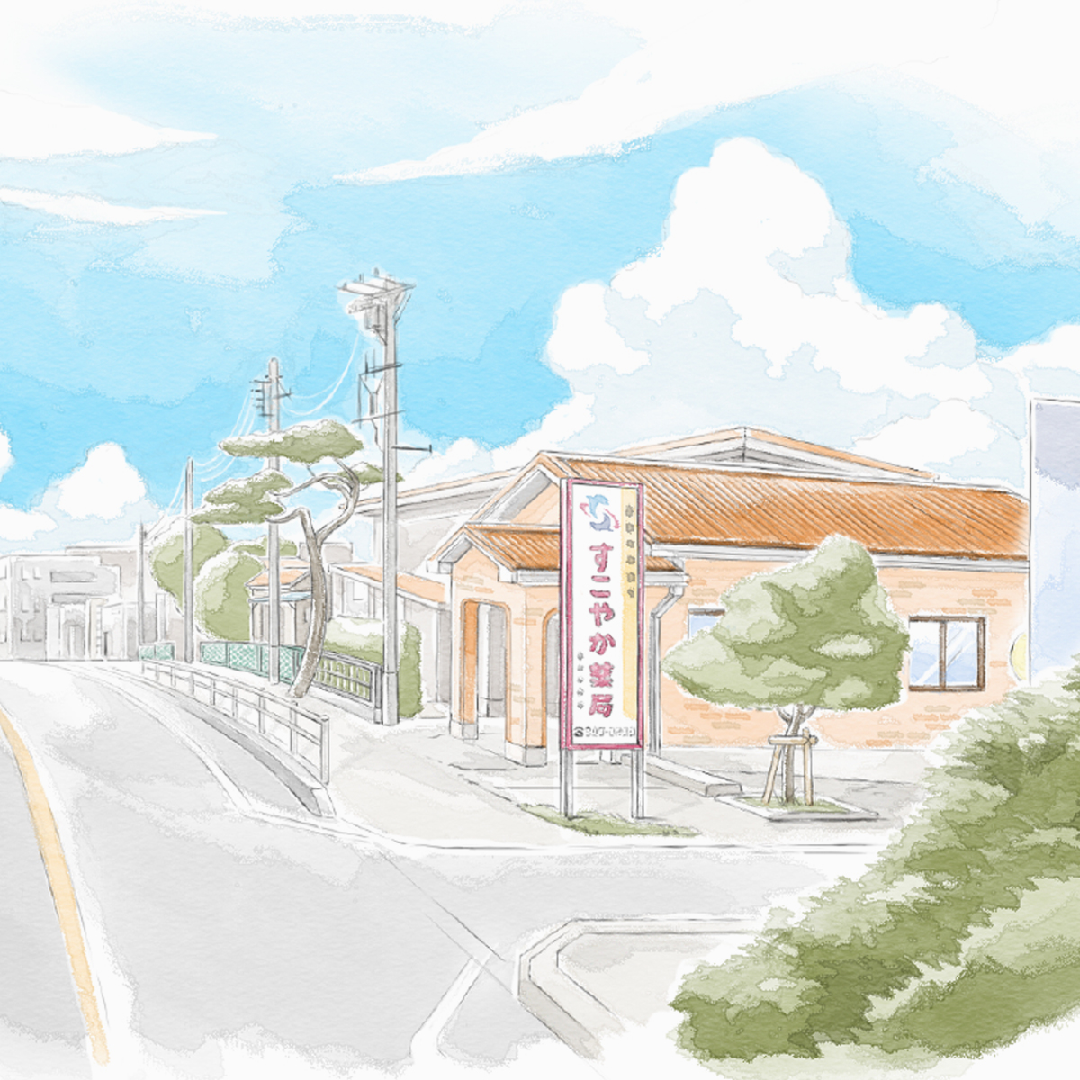 すこやか薬局のCMでは、まず絵コンテの段階から、やさしさ、信頼感、安心感、ぬくもりが自然に伝わることを大切にしました。 薬局という存在に求められるのは、機能的な便利さだけではなく、人に寄り添う温度や心の近さでもあると考えています。