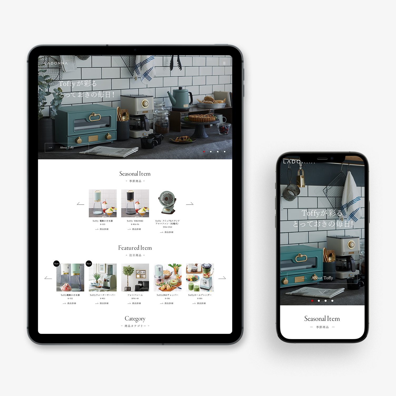 見た目の美しさは、単なる演出ではなくブランドの信頼感にもつながる要素です。ladonnaのサイトでは、暮らしを彩るプロダクトとしての魅力を、落ち着いたビジュアルの中で丁寧に表現しました。