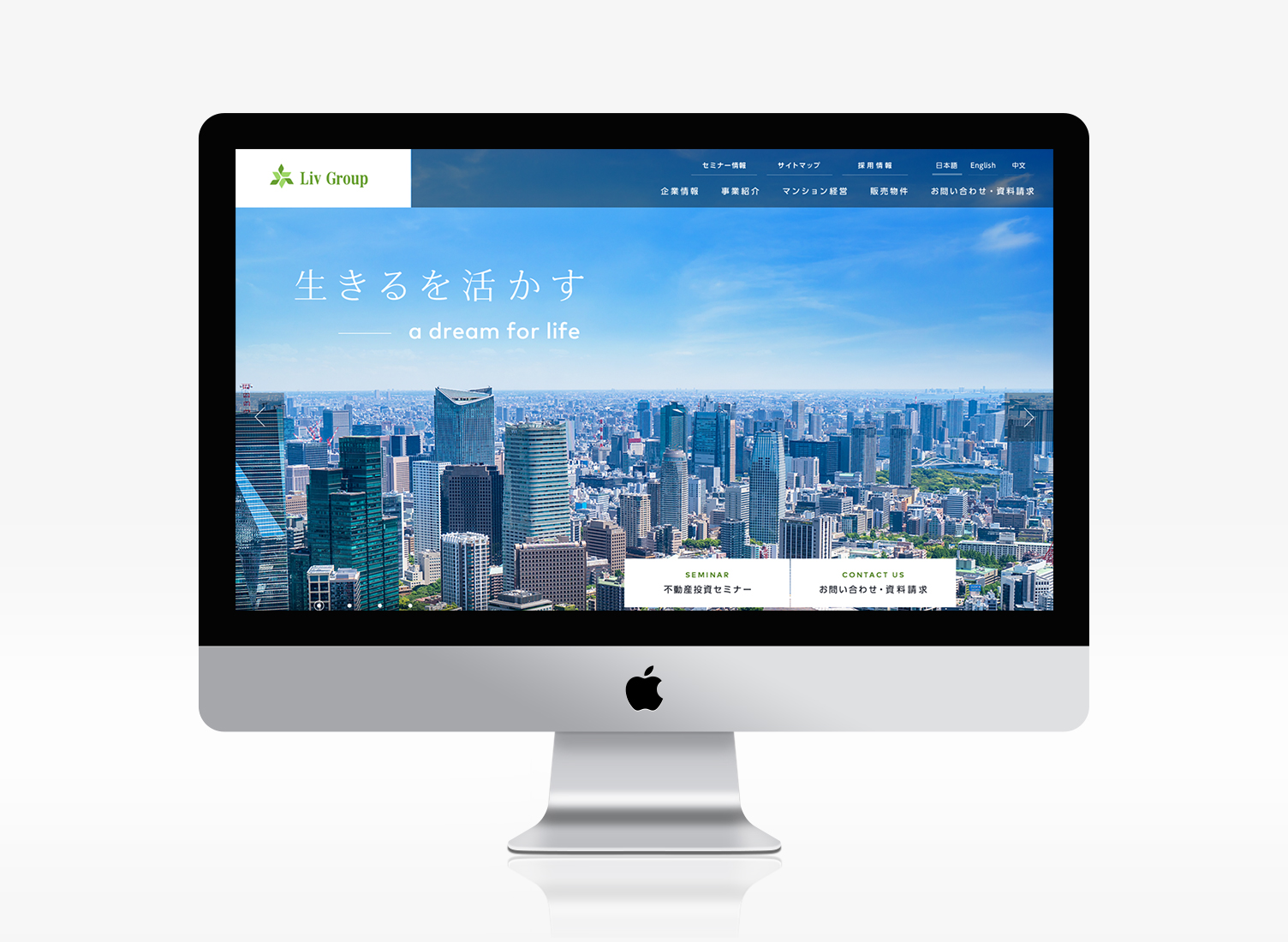 不動産売買を軸にしたグループとしての強さを伝えながら、全体の印象は端正で見やすく保つことも大切にしました。LIV Groupのサイトでは、情報設計とビジュアルデザインの両面から、グループ全体の輪郭を明快に描き出しています。